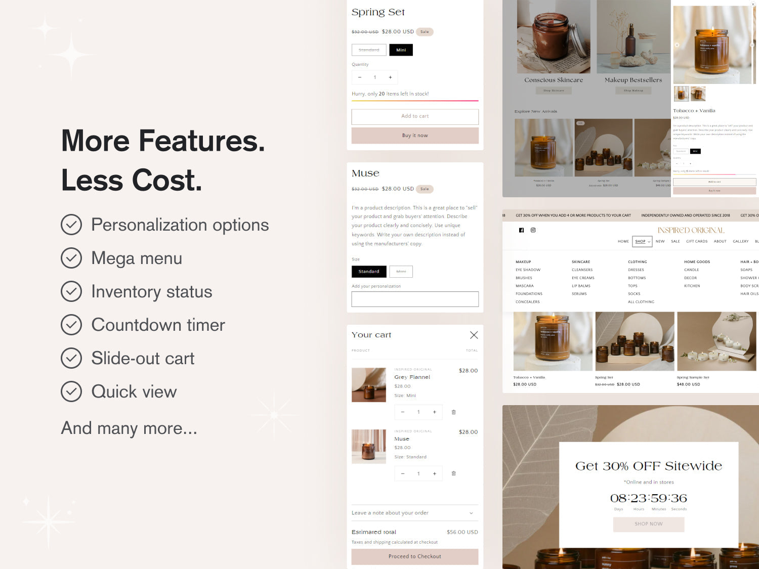 With a sleek, minimalistic, and aesthetic design, Inspired Original is a premium Shopify theme that is designed to elevate your brand's presence. Inspired Original empowers your products while retaining simplicity and clarity, with an array of customizable options. This theme is user-friendly, versatile, and adapts to your brand's products seamlessly.