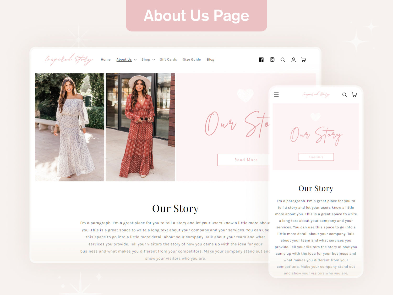 Story is a beautiful and elegant Shopify theme designed for businesses in the fashion industry. With its feminine and modern aesthetic, it is perfect for stores selling clothing, accessories, and other fashion-related products. The theme includes editable Canva templates, allowing for easy customization of banners and promotional materials. It also offers a user-friendly interface and a range of advanced features, making it an excellent choice for businesses looking to create stunning online stores.